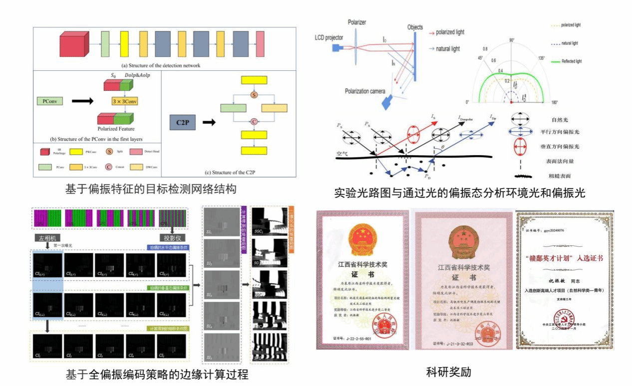 在项目执行期间,项目负责人祝振敏教授获2023年江西省科技进步二等奖、2022年江西省科技进步三等奖和詹天佑铁道科学技术奖詹天佑高等院校奖青年奖等奖项,在2024年先后获得省政府特殊津贴,入选赣鄱英才-创新高端人才(自然科学类-青年);在国际光学测量期刊共发表SCI检索论文31篇,其中发表在Optics Express、IEEE TIM、 Measurement、Optics and lasers in Engineering等测量领域JCR一区、TOP期刊共12篇;依托本项目培养硕士研究生21名。