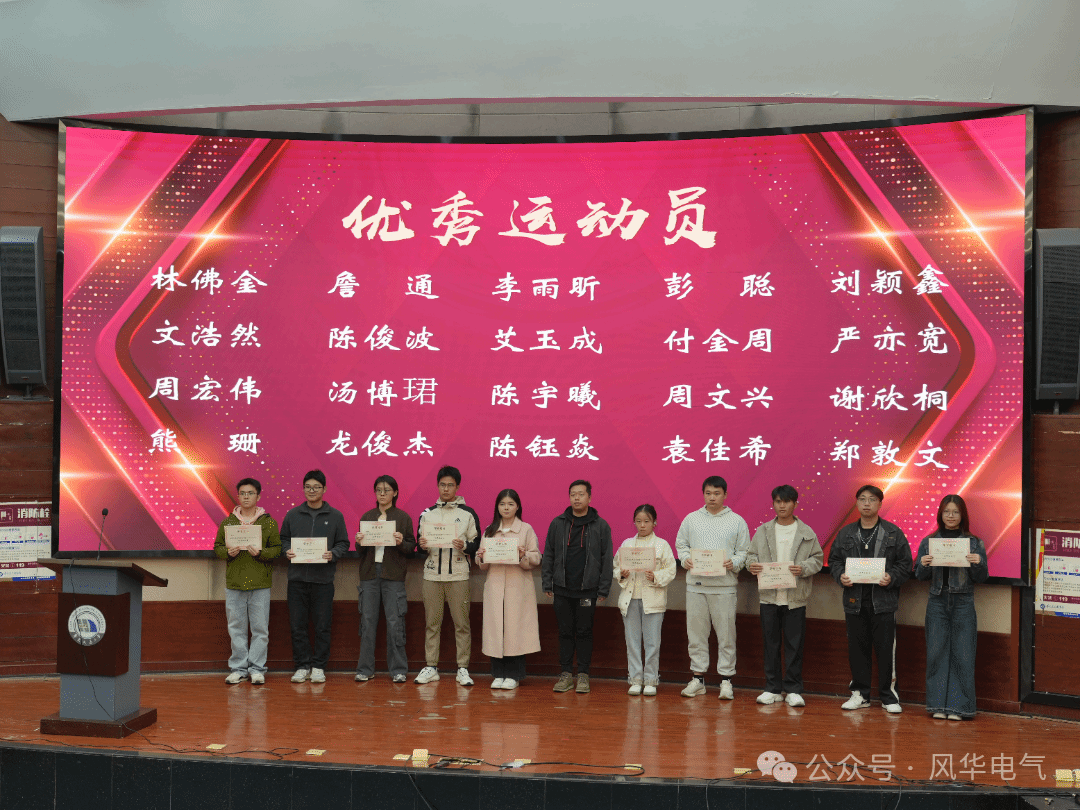 为共同回顾赛场辉煌,表彰在拼搏奋进的运动健儿与幕后辛勤付出的工作人员,进一步凝聚全院师生的奋斗力量,电气学院于11月26日晚在北区圆形报告厅召开校运会表彰大会。院党委副书记刘修财老师,院党委委员、党委组织员刘佳老师,院学工办主任、团委书记戴晶晶老师,院学工办副主任、团委副书记夏圣伟老师、刘锋老师、江雅琪老师,学工办全体辅导员以及各运动队成员、教练共同出席本次大会。大会由学生会主席肖迪夫主持。