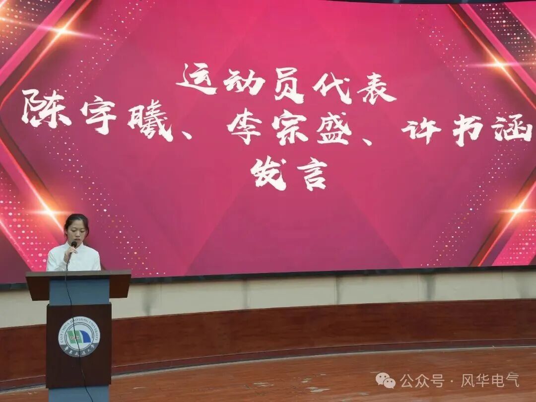 随后,运动员代表陈宇曦、李宗盛和许书涵上台发言。他们表示,奖牌的重量里,有自己的汗水,学长学姐的指导,更有学院的支持,未来会把赛场上的拼劲带到学习里,继续为学院争光。他们的发言饱含青春力量,又满怀真挚情感,激励着全体电气人在成长路上勇毅前行。