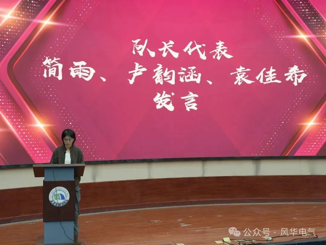 队长代表简雨、卢韵涵和袁佳希依次上台发言。她们总结赛前备战与参赛的精彩瞬间,讲述队员间的默契配合、获胜时的喜极而泣。她们表示,会带着队员们继续努力,将电气学院不服输、不放弃的精神传承下去,续写一个又一个传奇。